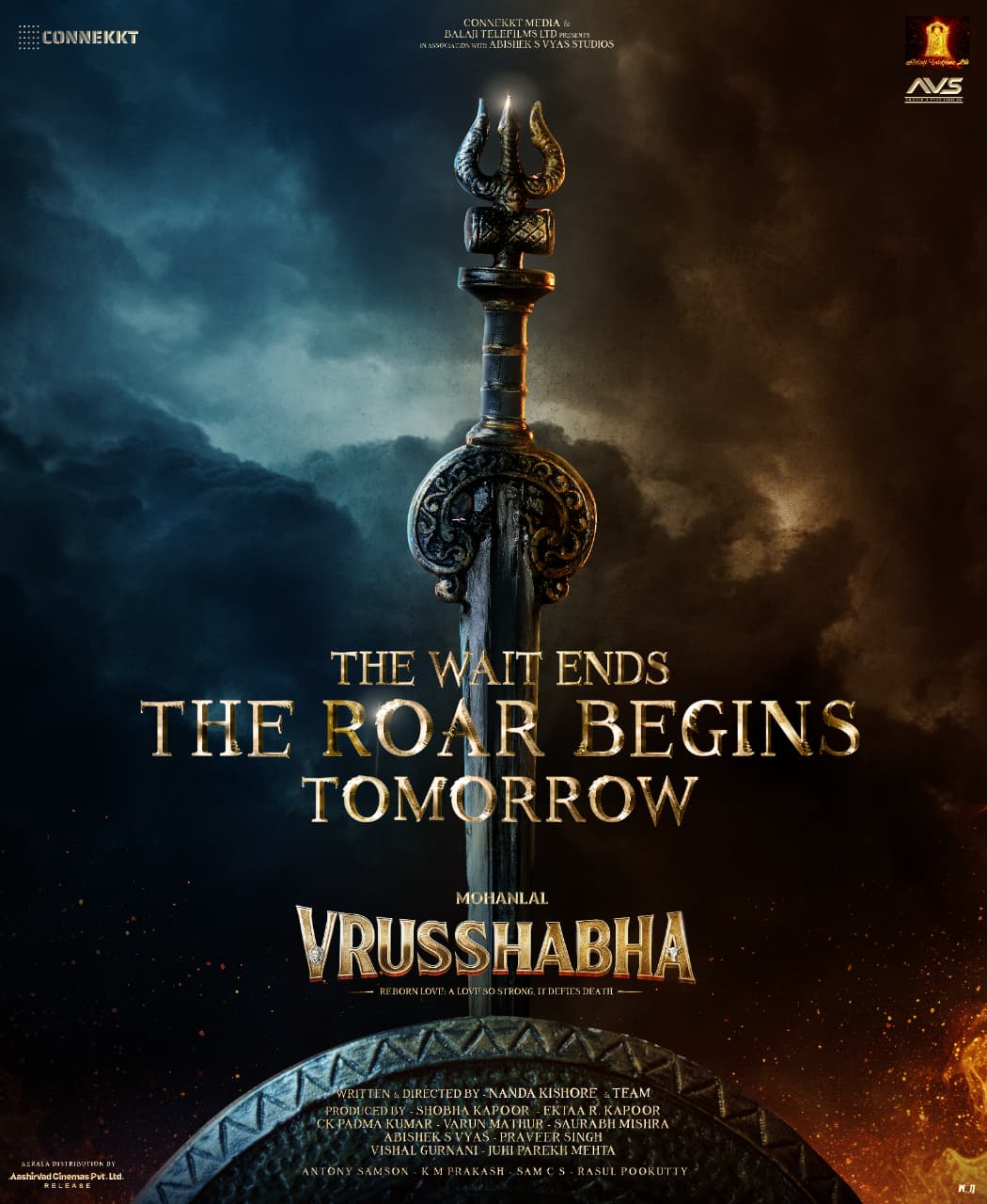 Mohanlal took to his social media today to announce: “The Wait Ends. The Roar Begins Tomorrow! Get ready to step into the world of Vrusshabha.”