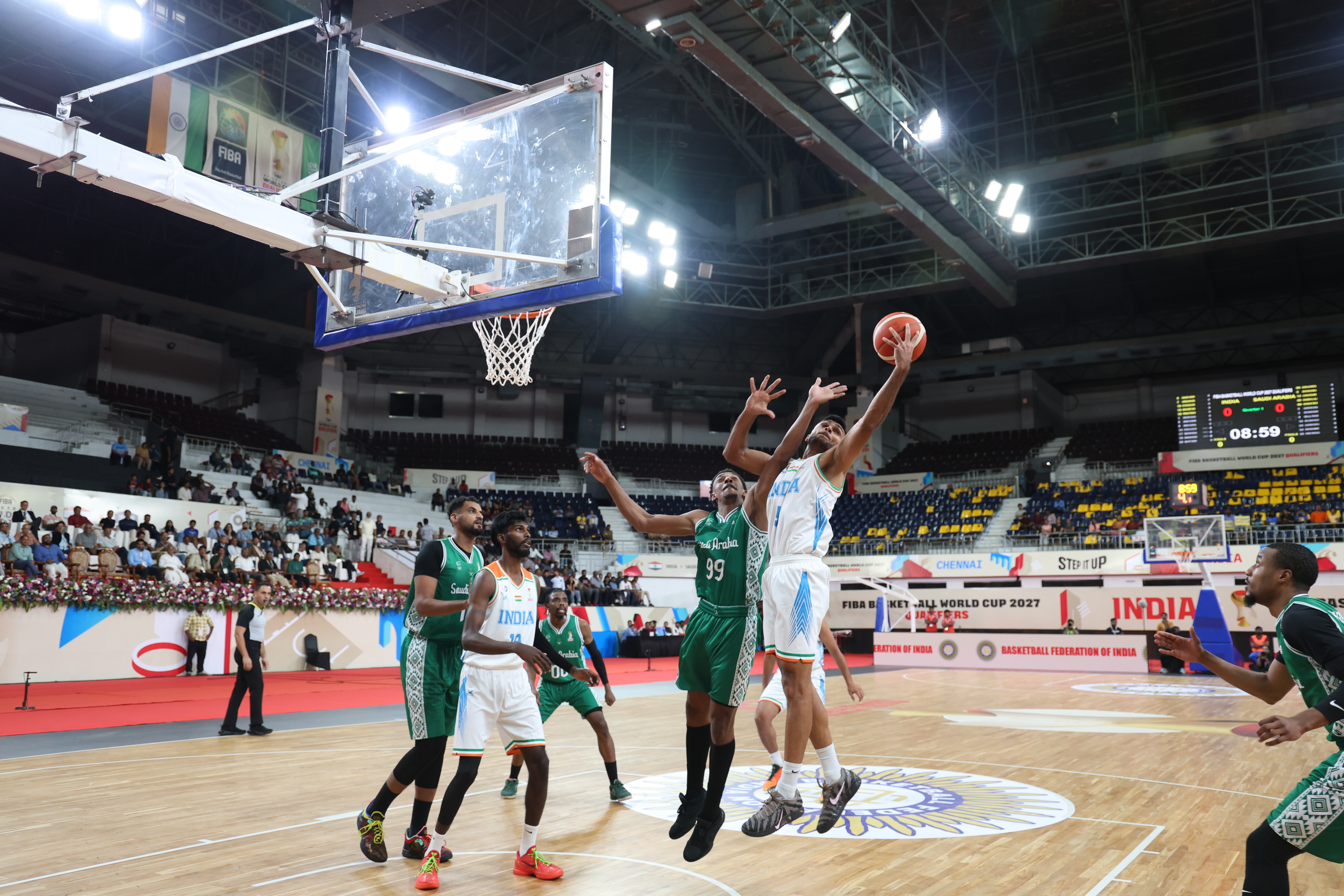 2027 கூடைப்பந்து உலகக் கோப்பைக்கான தகுதிச்சுற்று போட்டி , நேரு உள்விளையாட்டு அரங்கத்தில் நடைப்பெற்றது. இதில் இந்தியா – சவூதி அரேபியா அணிகள் பலப்பரீட்சை நடத்துயது...
