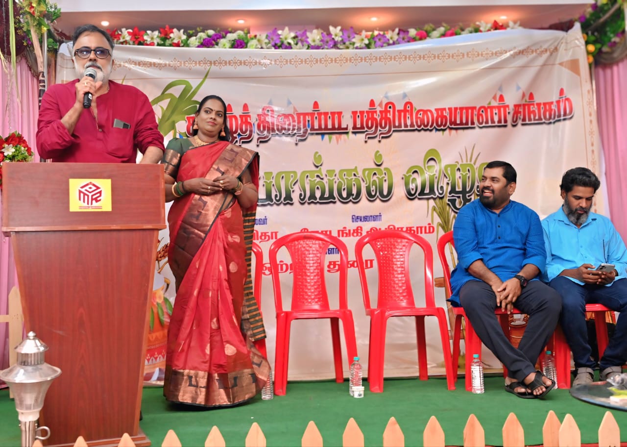 சென்னை,ஜன.16- தமிழ் திரைப்பட பத்திரிகையாளர்கள் சங்கத்தின் பொங்கல் திருவிழா சென்னையில் நடந்தது. இவ்விழாவுக்கு சங்கத்தின் தலைவி கவிதா தலைமையேற்று நடத்தினார். இவ்விழாவில் சிறப்பு விருந்தினர்களாக பிரபல ஒளிப்பதிவாளர் பி.சி.ஶ்ரீராம், நடிகர் அக்ஷய் குமார், ஒளிப்பதிவளர் ரவி ஆகியோர் கலந்து கொண்டார்கள். விழாவுக்கு வந்து சிறப்பித்தவர்கள் சங்க செயலாளர் கோடங்கி ஆபிரஹாம் வரவேற்றுப் பேசினார். நிகழ்சியை சங்க அங்கத்தினர் செல்வி. சுஷ்மா தொகுத்து வழங்கினார். சங்கத்தின் தலைவி கவிதா ஒளிப்பதிவாளர் பி.சி.ஶ்ரீராமிடம் “உங்கள் வெற்றியின் ரகசியம் என்ன? என்று கேட்ட கேள்விக்கு பதிலளித்த ஶ்ரீராம், “தோல்விதான் எனது வெற்றிக்கு காரணம். தோல்விதான் வெற்றிக்கான தேடல்” என்றார். காதலைப்பற்றிய கேள்விக்கு பதிலளித்த பி.சி.ஶ்ரீராம், “ரகசியமாக இருந்தால் தான் அது காதல். பலருக்கும் அது தெரிந்துவிட்டால் சுவாரசியம் இருக்காது. காதலை மனதுக்குள் வைத்து போற்றி பாதுகாக்க வேண்டும்”. என்றார்